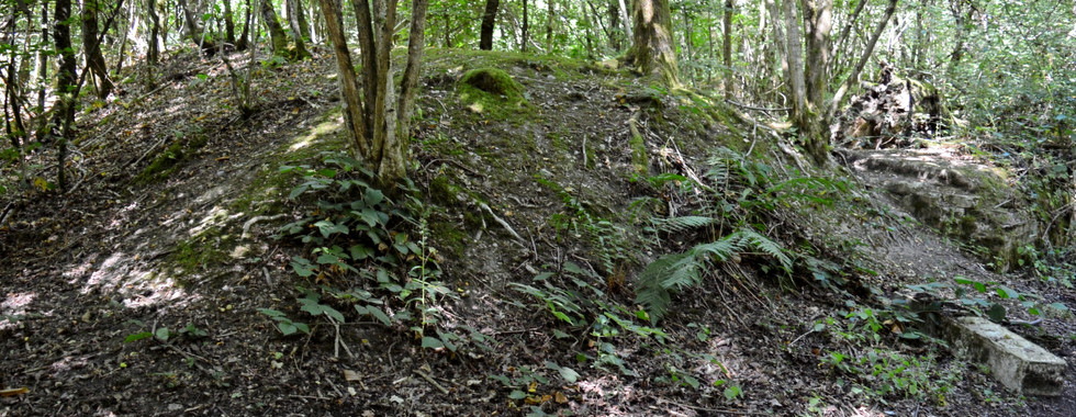 A low brick and concrete wall with metal ring fittings spans the entirety of the southernmost track and is in remarkable condition despite considerable damage and overgrowth. Possibly two more mounds are based in the northernmost part of the reserve. The flatter terrain housed other buildings long since vanished from the landscape, (highlighted orange). These structures were apparently demolished between fifteen and twenty years ago.